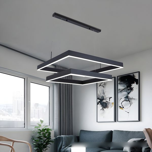 Minimalist Geometric LED Chandelier, Black Square Pendant Light with Adjustable Cable - 110V-120V 16"+23.5" Remote Control Stepless Dimming