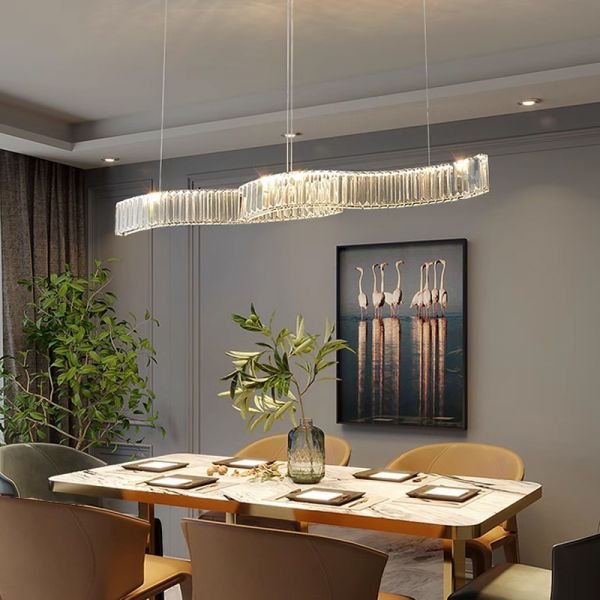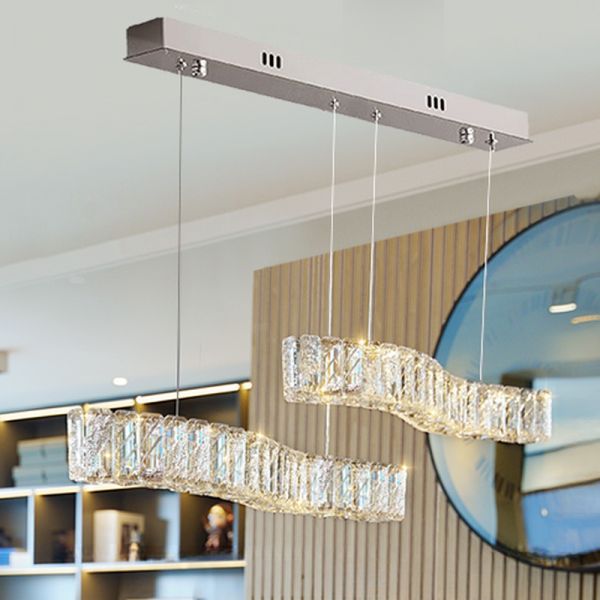 Contemporary Linear Wave Chandelier, Textured Crystal Island Pendant Light for Dining Room & Kitchen, Adjustable Height - Silver 110V-120V 39.5"