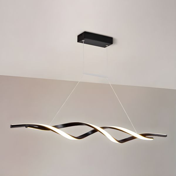 Contemporary Linear Wave Pendant Light, LED Island Chandelier with Fluid Profile - Black 110V-120V 35.5" Remote Control Stepless Dimming