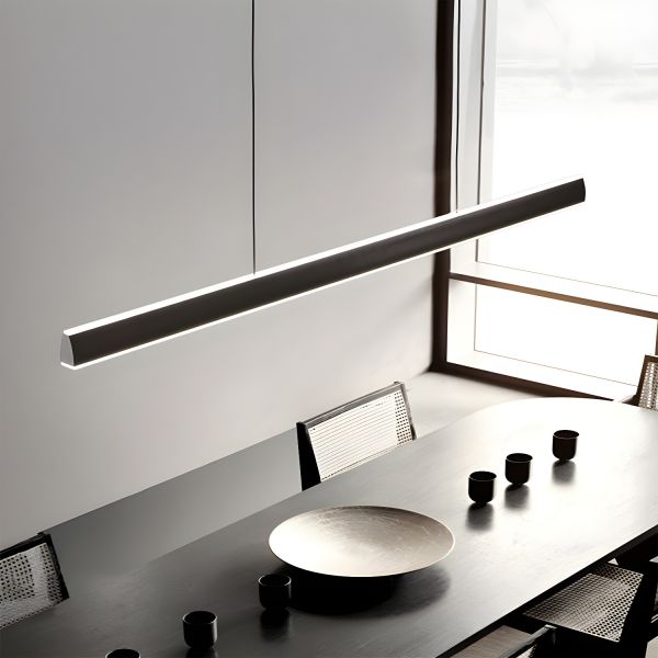 Sleek Minimalist Linear LED Island Pendant, Matte Black Aluminum Chandelier, Adjustable Hanging Bar Light - 110V-120V 31.5" Remote Control Stepless Dimming