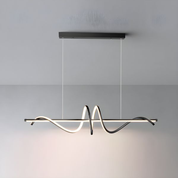 Contemporary Linear LED Island Light, Geometric Wave Chandelier with Adjustable Height for Dining Room - 110V-120V Black 39.5" Remote Control Stepless Dimming