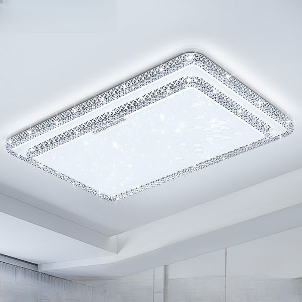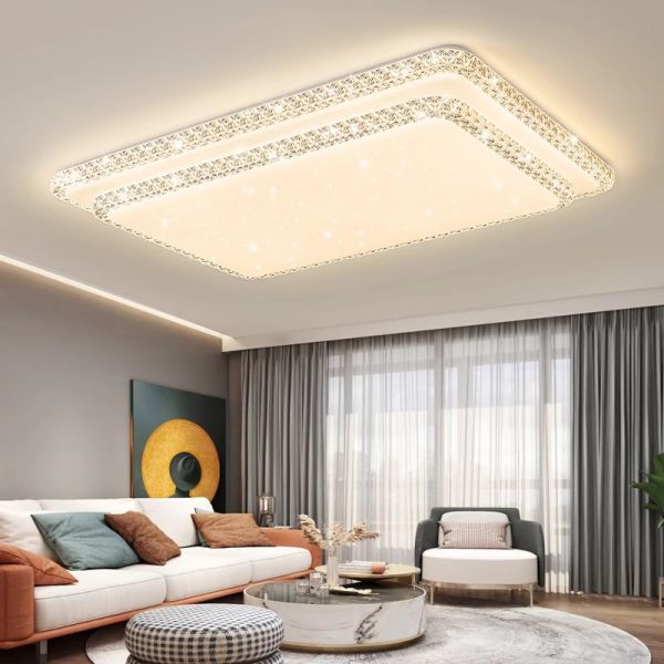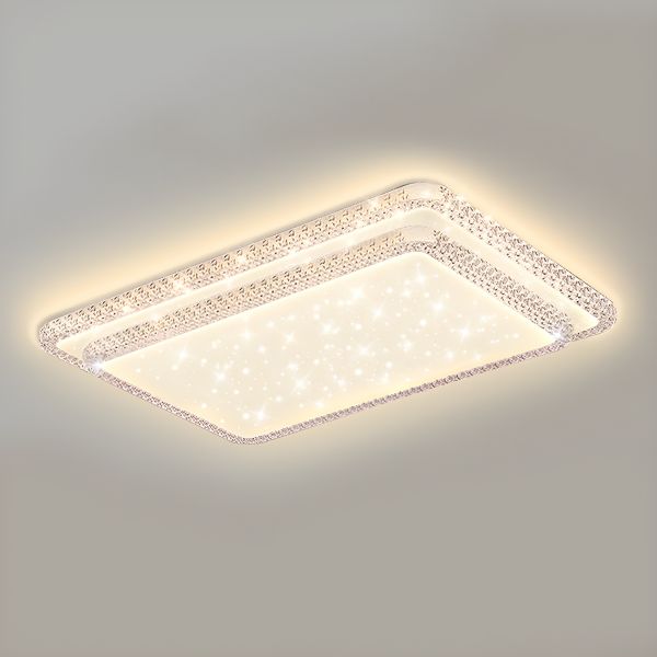 Luxe Rectangular LED Flush Mount Ceiling Light, Starry Acrylic Lampshade with Crystal-Style Border - 110V-120V White Light