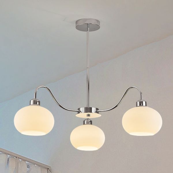 Elegant Chrome Chandelier with White Glass Shade and Adjustable Hanging Length - 110V-120V 3 Milky Yellow