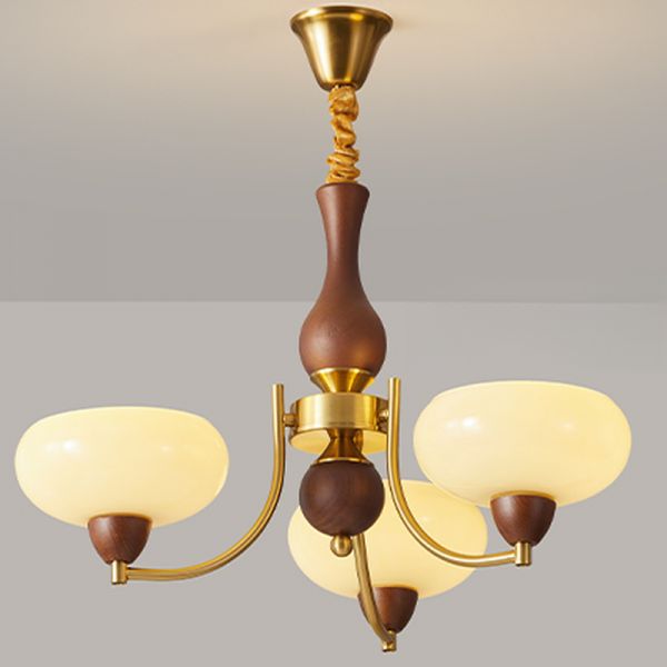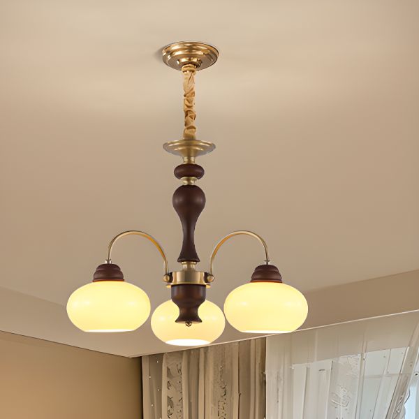 Traditional Drum Chandelier with White Glass Shade and Adjustable Hanging Length in Walnut - 110V-120V 3 Milky Yellow