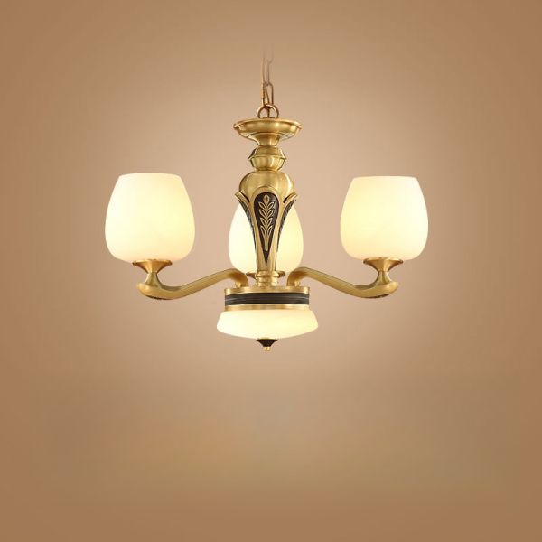 Traditional Jar Chandelier with White Glass Shades and Adjustable Hanging Length in Metal - 110V-120V Walnut 3