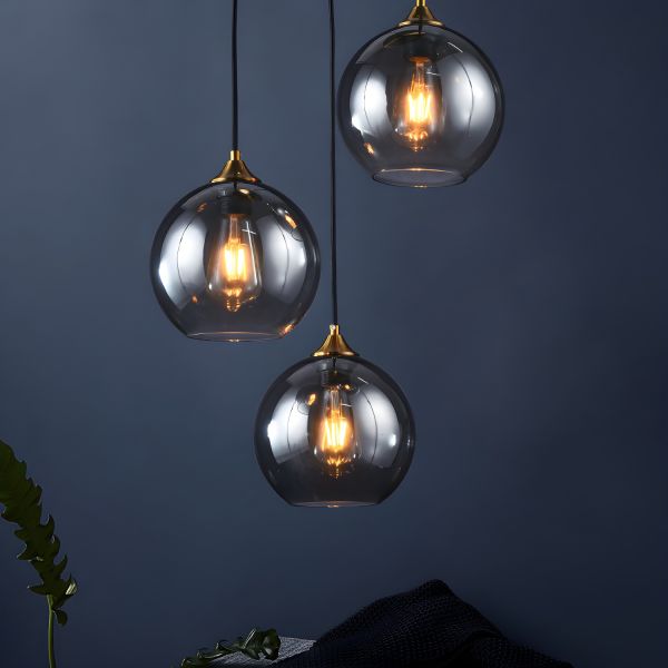 Industrial Glass Globe Pendant Light, Adjustable Hanging Fixture for Kitchen Island - 110V-120V 3 Round Smoke Grey