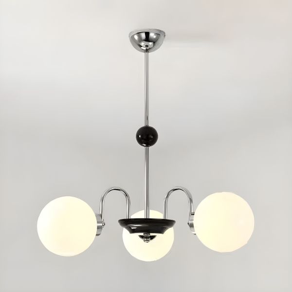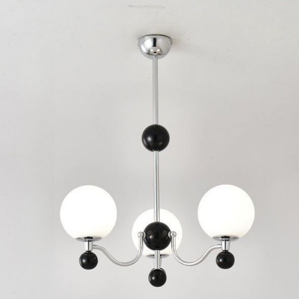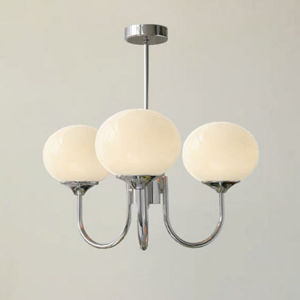 Mid-Century Brass Globe Chandelier with Curved Arms & Glass Shades - Chrome 110V-120V Milk White 3