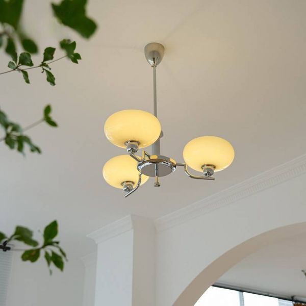 Mid-Century Opal Glass Chandelier, Ambient Semi-Flush Ceiling Fixture - 110V-120V Chrome 3 Beige