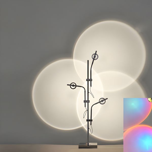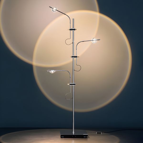 Contemporary Chrome LED Floor Lamp with 6 Adjustable Halo Projection Heads - 110V-120V