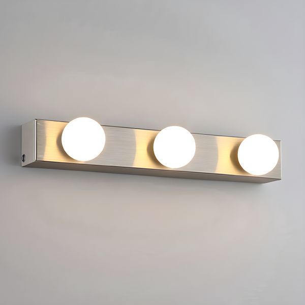 Contemporary Stainless Steel Vanity Light Bar with Frosted Globe Shades - 3 110V-120V