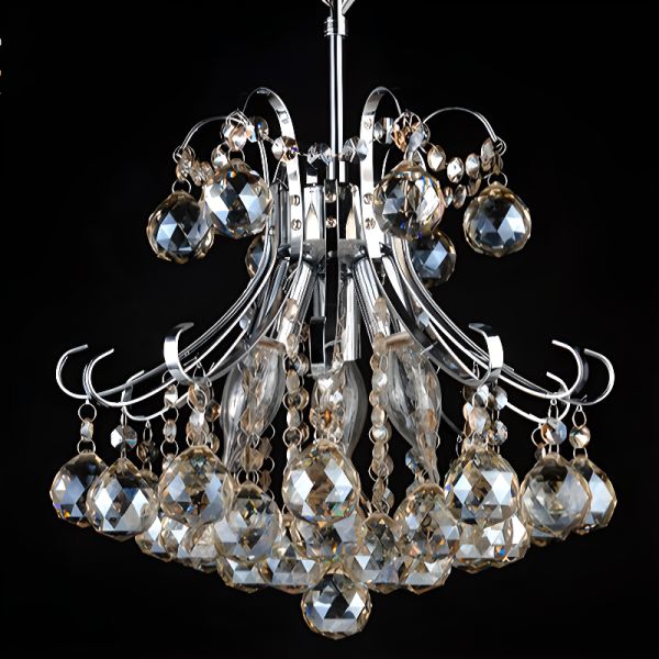 Luxe Crystal Candle-Style Chandelier with Chrome Arms and Faceted Droplets - Clear 110V-120V 3