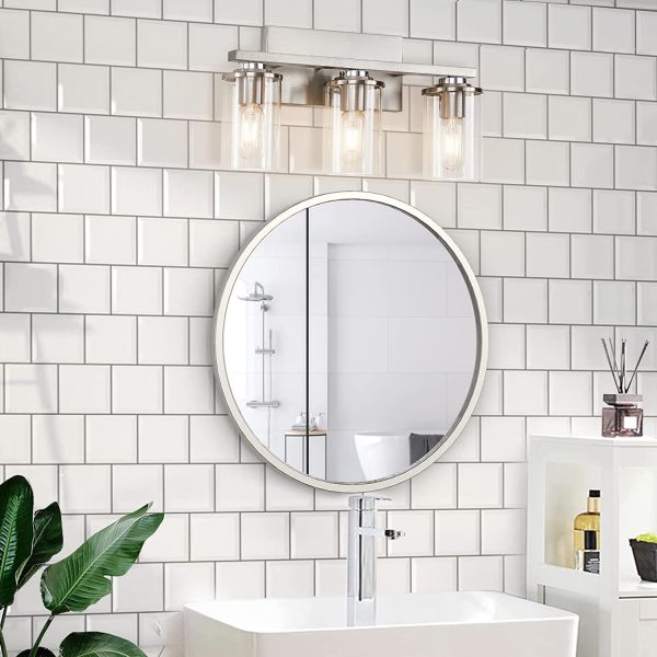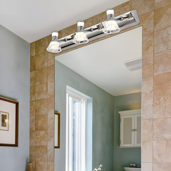 Modern Industrial 3-Light Mirror Front Light, Metal Wall Sconce with Clear Glass Shades for Bathroom - Chrome 110V-120V