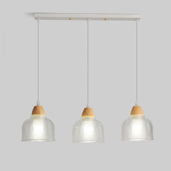 3 Lights Transparent Kitchen Island Ceiling Light with Led & Incandescent & Fluorescent, Vitreous Symmetrical Shade for Residential Use, Tailorable Hanging Length, 110V-120V, 21.5"