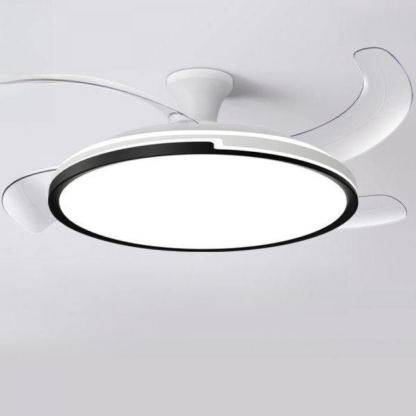Retractable Blade Ceiling Fan with Light, 4 Clear Blades, ABS Plastic, Third Gear Color Temperature, Simple Style, LED Light for Residential Use, White, 110V-120V