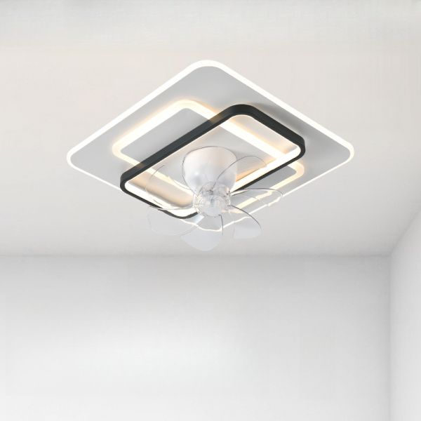 Dimmable Flushmount Ceiling Fan with 7/14 Clear Blades and Remote Control Stepless Dimming for Residential Use, Acrylic Blades - 110V-120V Square