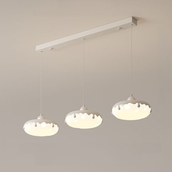 3 Lights Island Pendant Light Fixture with Pure Light, Geometric Chalk PMMA Shade, LED, 110V-120V, Round, Cream