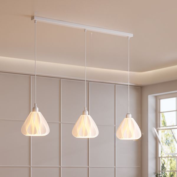 3 Lights Island Kitchen Pendant with Geometric Chalk Plexiglass Shade, Third Gear Color Temperature for Residential Use and String Mounting, 110V-120V