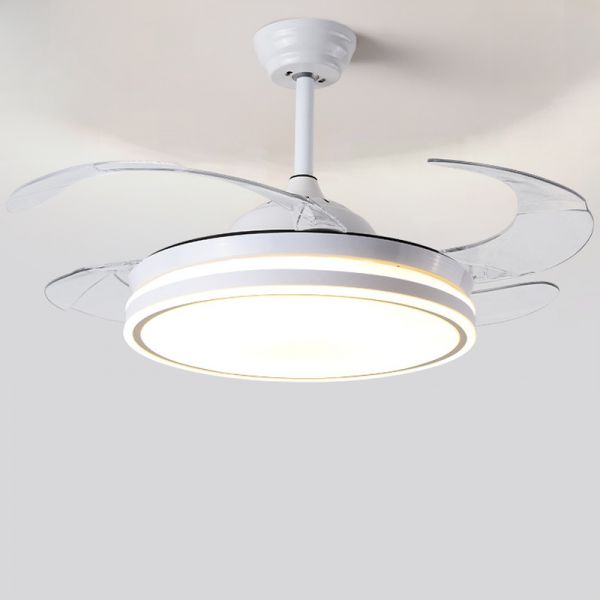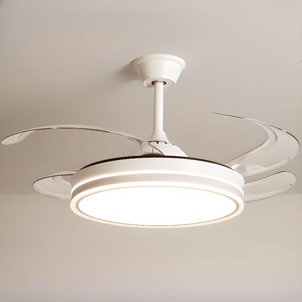 Retractable Blade Ceiling Fan with Light, 4 Transparent Blades, Third Gear Color Temperature, LED, Casual Style for Residential Use, Polymer Material, White, 110V-120V, 42.5"