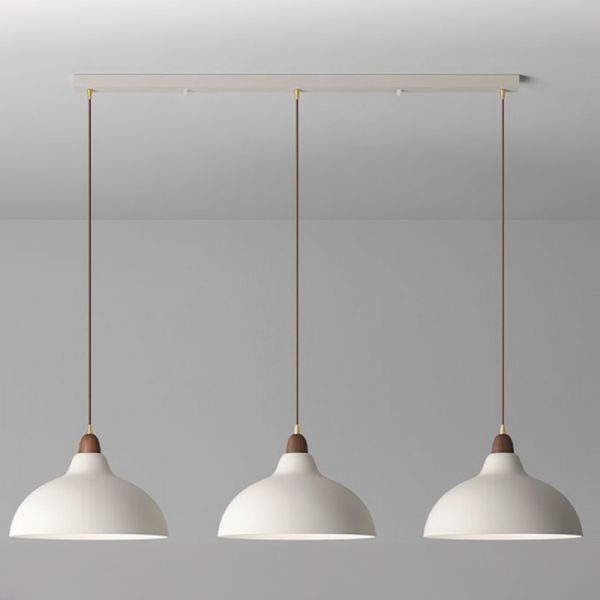 Aluminum 3 Lights Kitchen Island Ceiling Light with Smooth Dimming Control, Symmetrical White Shade, Led Light Fixture for Residential Use, White, 110V-120V, 43"