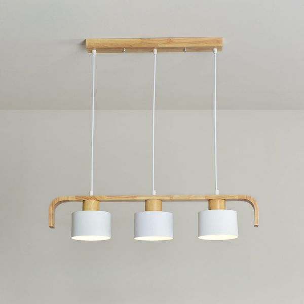 Scandinavian Linear Wood Island Light with Matte Metal Shades and Adjustable Cords - 3 White 110V-120V