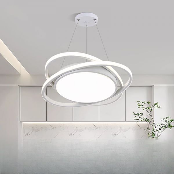 Contemporary LED Planetary Pendant Light, Geometric Ring Chandelier for Kids Room and Living Area - White 110V-120V 16"