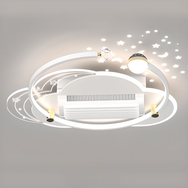Whimsical LED Planet Pendant Light, Creative Galaxy Ring Chandelier with Star Accents for Kids Bedroom - White 110V-120V 20"