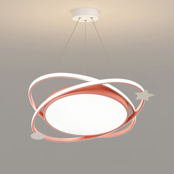 3 Lights Children Heavenly Body Ceiling Light Fixture, 110V-120V, Third Gear (Warm/White/Neutral Light of Dimming), Pink-White