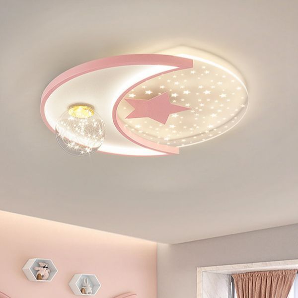Kids Star Flush Mount Lighting Fixtures 1 Light Acrylic Flush Mount Recessed Lighting - Pink 110V-120V White Light