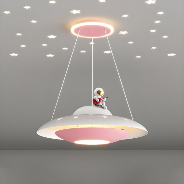 Kids' Space-Themed UFO Chandelier, Pink/Blue LED Projection Pendant for Children's Bedrooms - Pink 110V-120V Third Gear (Warm/White/Neutral Light of Dimming)