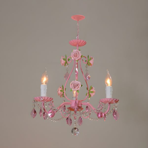 Crystal Pink Pendant Chandelier Candelabra 3 Lights Traditional Ceiling Hang Fixture for Living Room