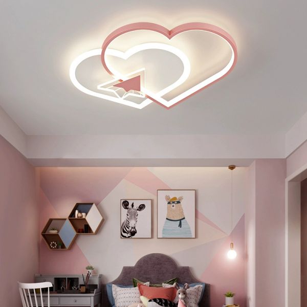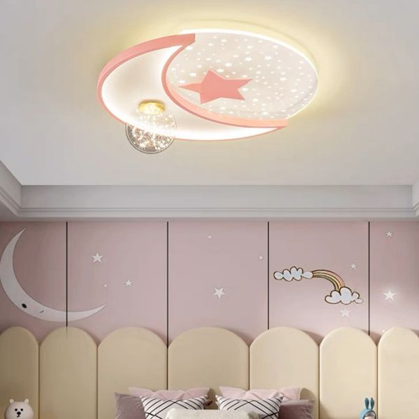 Whimsical LED Flush Mount Ceiling Light, Creative Dimmable Fixture for Bedroom & Nursery - Pink 110V-120V Third Gear (Warm/White/Neutral Light of Dimming) Star