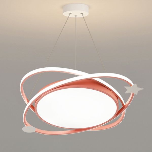 Contemporary Geometric LED Pendant Light, Interlocking Ring Chandelier with Adjustable Suspension - Pink 110V-120V White Light