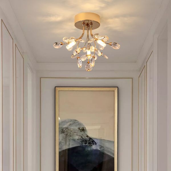 Nordic Gold Semi Flush Mount Ceiling Light, Creative Decorative Fixture for Hallway Bedroom, Warm Ambiance - Clear 110V-120V Flower