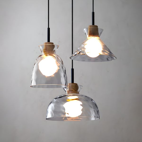 Scandinavian Natural Wood & Water-Pattern Glass Pendant Light, Dome Fixture for Kitchen & Bedroom - 110V-120V Round Design 4