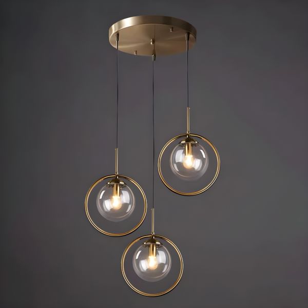 Glass Gold Pendant Light in Modern Luxury Style Electroplate Iron Globe Hanging Lamp for Bedroom - 110V-120V Clear 3