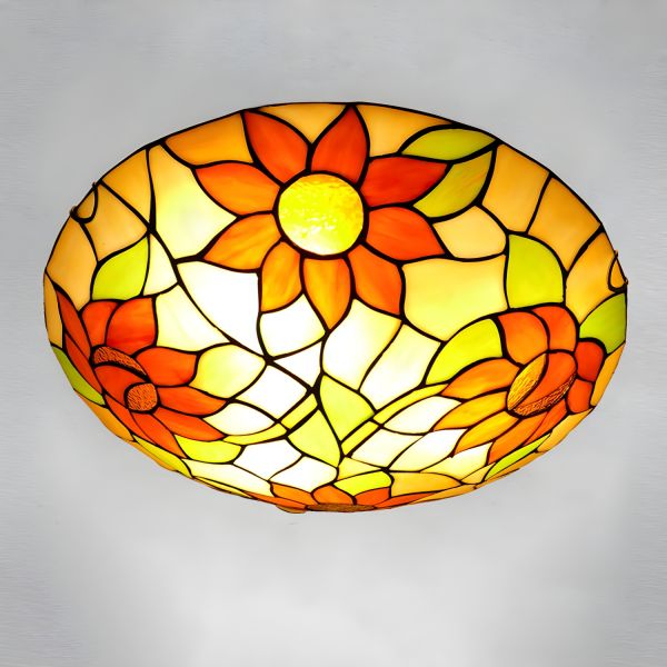 Tiffany Victorian Domed Flush Mount Light Stained Glass Flush Ceiling Light for Living Room - Yellow 110V-120V 16"