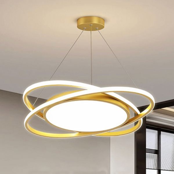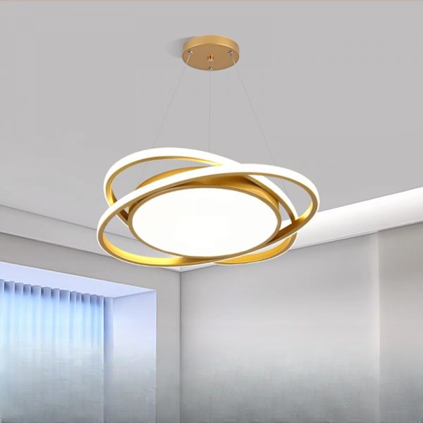 Contemporary LED Planetary Pendant Light, Geometric Ring Chandelier for Kids Room and Living Area - Gold 110V-120V 16"