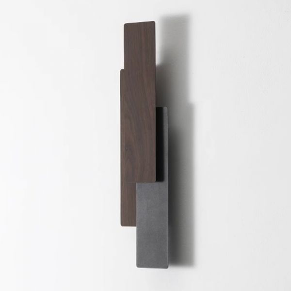 Geometric LED Wall Sconce, Linear Metal Ambient Light with Wood Grain Finish for Hallway Bedroom - 110V-120V Walnut 15"