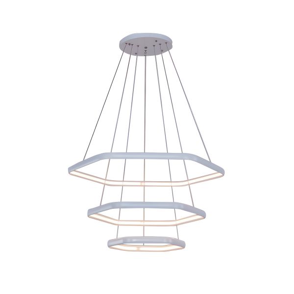 Acrylic 3-Layer Hexagon Ceiling Pendant Modern White LED Chandelier for Living Room
