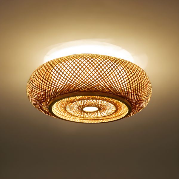 Japanese Zen Hand-Woven Bamboo Flush Mount Ceiling Light for Warm Ambient Lighting - Light Wood 110V-120V 16"
