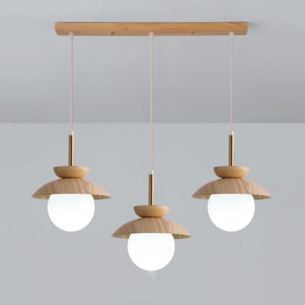 Scandinavian Wood-Accent Pendant Light Three-Light Linear Chandelier with Rotomolded Shades for Dining Room & Kitchen - Globe 110V-120V
