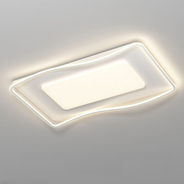 Modern Aluminium Lamp LED Ceiling Light Wrought Iron Indoor Flush Mount with Rectangular Acrylic Shade - 3 110V-120V White/Black
