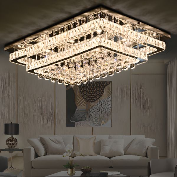 Metallic Crystal Shade 3 Lights Ceiling Fixture, 110V-120V, Rectangle, 39.5"