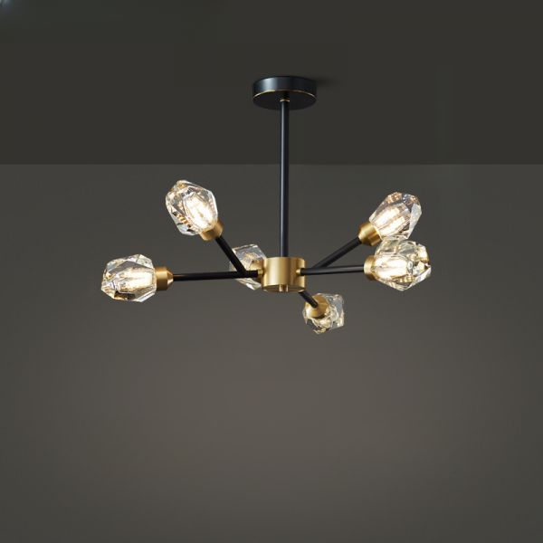 Translucent Modern Light Chandelier with K9 Crystal Glass Bi-pin Shade, 6 Lights, and Geometric Shape, Black, 110V-120V