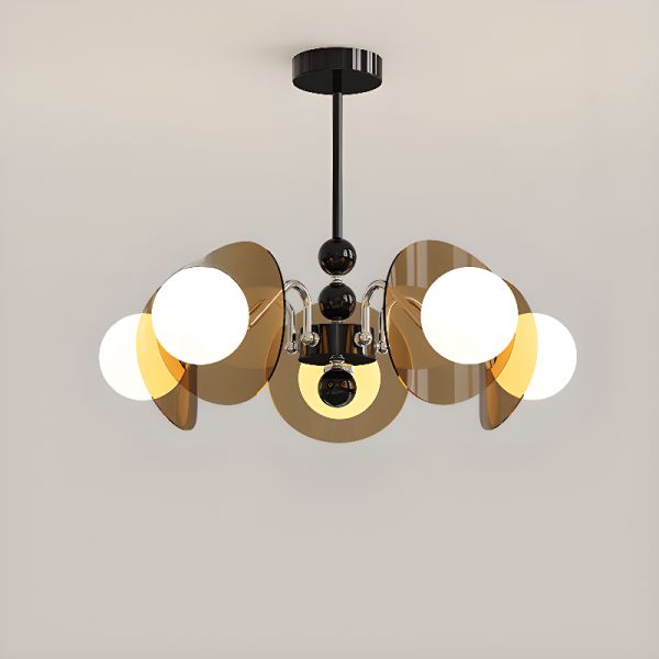 Adjustable Height Light Chandelier with Bi-pin Light Type, White Glass Shade, 6 Lights, Cover Fixture, Cord Mounting, and Glass Material, Black, 110V-120V, Globe