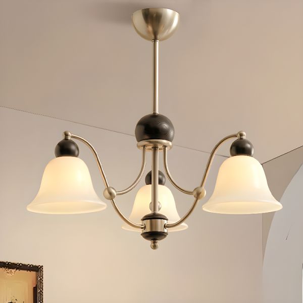 3 Lights Bell Shaped White Glass Light Chandelier with Adjustable Height Chain & White Vitreous Shade, 110V-120V, Black