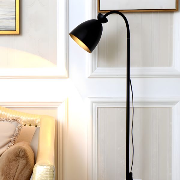 Macaron 1 Bulb Floor Lamp Flexible Arm Standing Light with Bell Metal Shade - 110V-120V Black Plug In Electric Bell