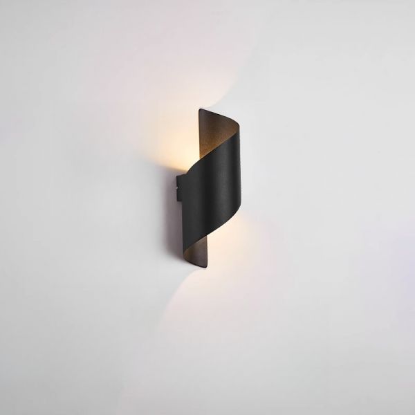 Contemporary Sculptural LED Wall Sconce, Metal Ribbon Up Down Light with Gold Interior - Black 110V-120V White Light
