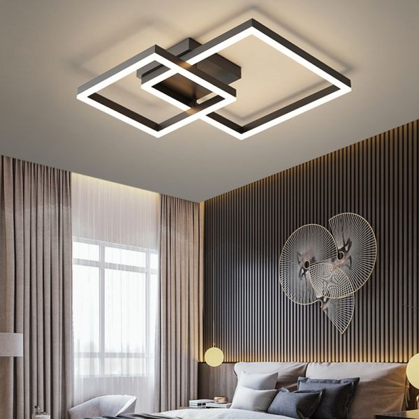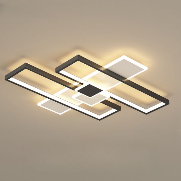 Geometric LED Flush Mount Ceiling Light, Layered Rectangular Fixture for Living Room - 110V-120V Black 22"