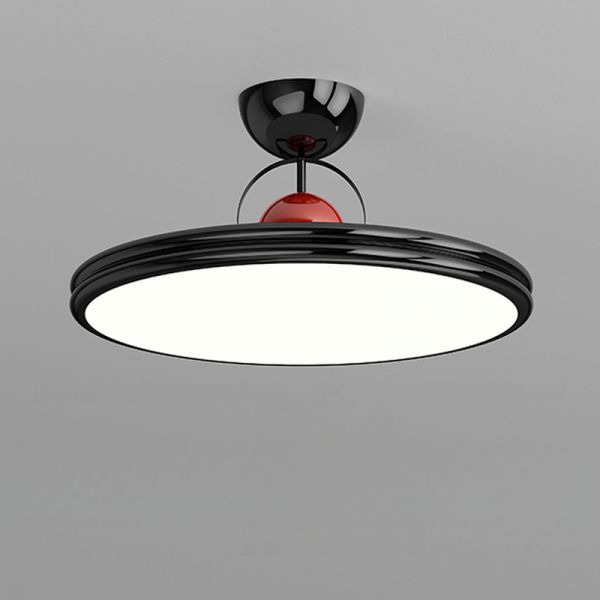 Bauhaus Retro Semi-Flush Mount Ceiling Light, Glossy Metal Disc LED Fixture for Bedroom - Red 110V-120V 12"
